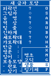 <한/글>은 명조 고딕 샘물 필기(1.5판에서 추가) 4가지의 비트맵 글꼴을 지원했으며, 로마자는 명조, 고딕, 윗첨자, 아래첨자, 이탤릭, 필기체(1.5판), 타임즈(1.5판), 유니버스(1.5판) 글꼴을 지원했다. 이를 위해 <한/글>은 자체적으로 화면용 글꼴(*.SFT)과 인쇄용 글꼴(*.PFT)을 개발했으며, 덕분에 그래픽 카드나 OS, 프린터 종류에 상관없이 원하는 글꼴을 그대로 출력할 수 있었다. 다만 이 비트맵 글꼴들은 크기를 확대하면 깨지는 단점을 가지고 있었고, 크기를 확대해도 깨지지 않는 벡터 형식의 글꼴은 나중에 <한/글 2.0>에서야 지원되기 시작했다. 그래서 <한/글 1.x>에서는 글자의 확대 효과가 가로/세로 2배로만 제한되어 있었다.