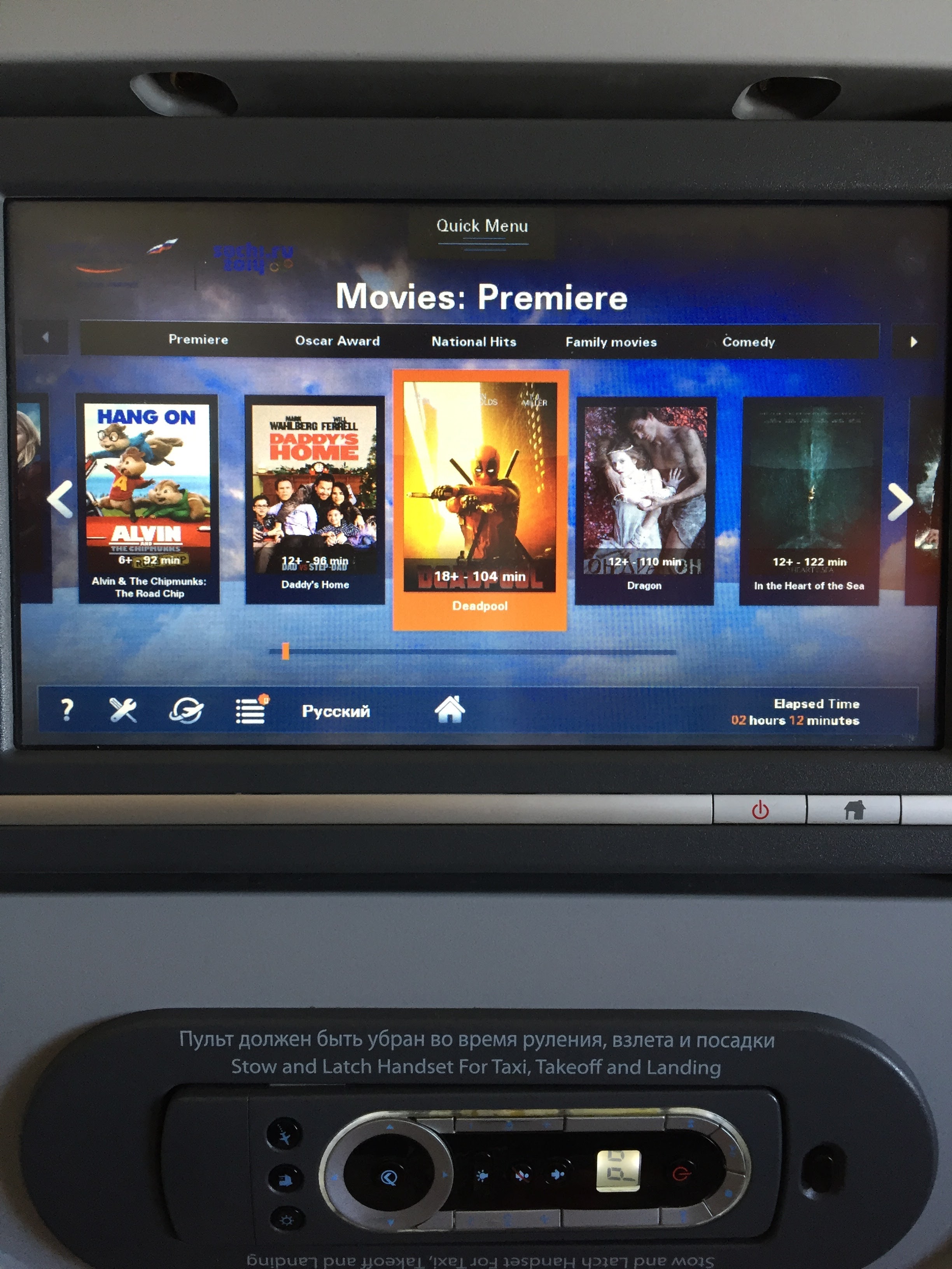 저가항공스럽지 않은 러시아항공의 화려한 개인 디스플레이.