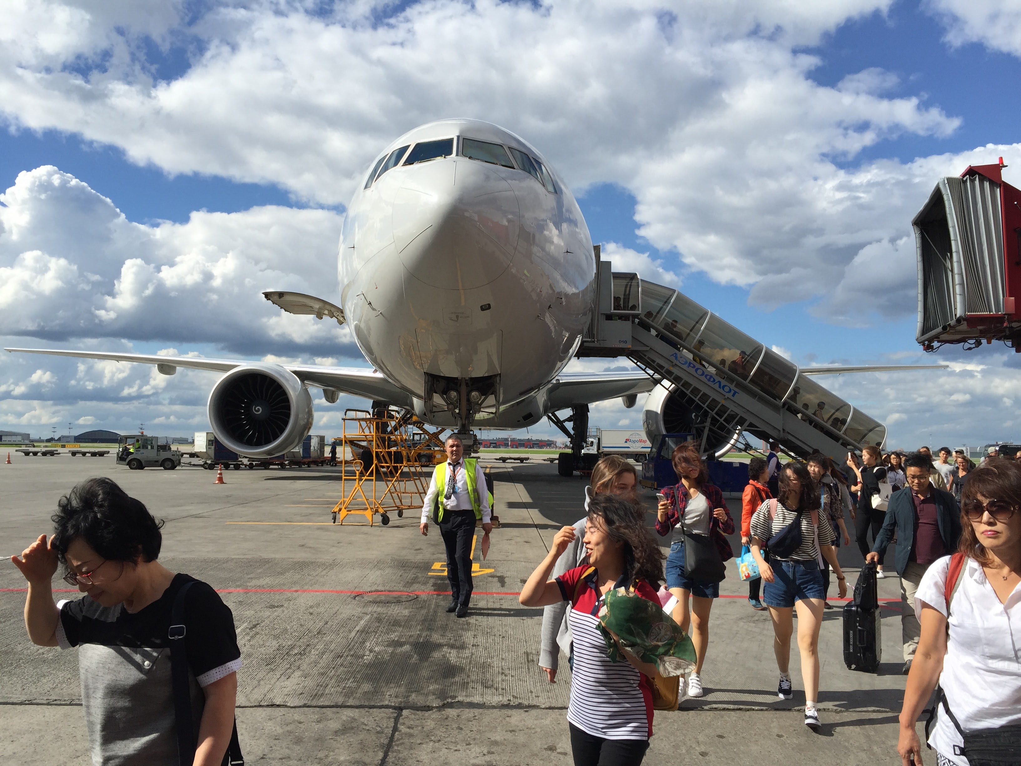 모스크바 공항에 착륙한 비행기. 날씨 완전 멋짐!
