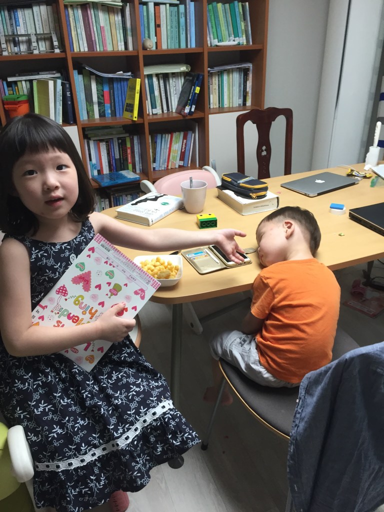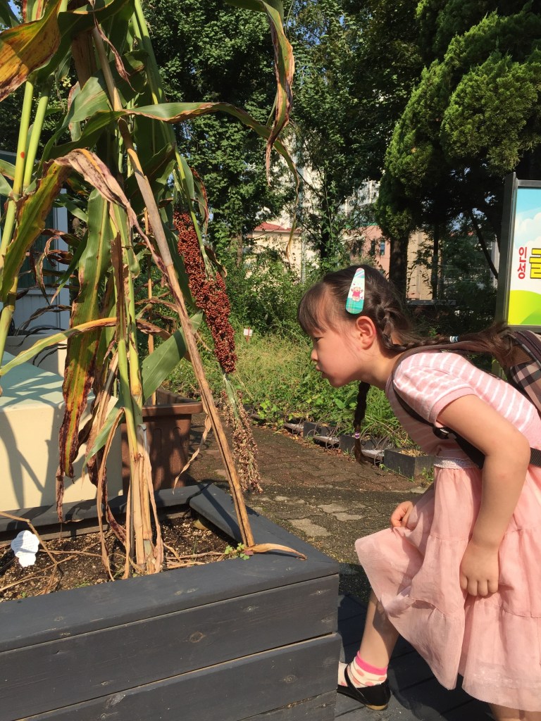 하늘이 어린이집 가는 길하임이 유치원 입구의 수수. 하임이는 그동안 이걸 “사탕수수”라고 주장했으나 이미지 검색 결과 그냥 수수인 걸로.뒤에 유치원 이름이 살짝 나오고 있다. 지금 유치원 나름 만족스러워 하는데 저 이름은 정말 맘에 안 든다.하임이랑 근처 초등학교 운동장에 축구하러 왔다. 같이 온 하늘이 컨디션이 안 좋아 공 10번도 못 차고 돌아갔다.어린이집 앞에서 등교를 거부하고 있는 하늘이. 사진도 찍기 싫어했다.하임이의 만화풍 그림들. ‘고양이’ 너무 잘 그렸다며 칭찬을 했더니 “여우”라고 화를 냈다. 꼬리를 봐야 했다.