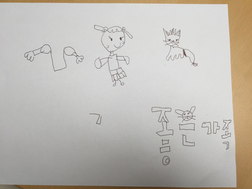 글을 올린 다음에 또 기억이 났는데, 아래쪽의 ‘ㅇ’에 합성한 그림을 보고는 “이건 쥐지?” 했더니 하임이가 “고양이야”라고 했었다.