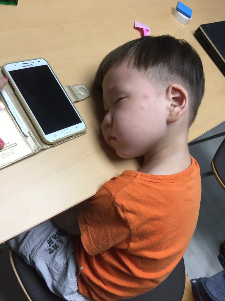 하늘이가 잠든 늦은 오후의 거실 풍경. 난장판이다.낮잠도 안 자며 버티더니… 결국 핸드폰 하다 이렇게 뻗고 말았다.“짜잔~ 하늘이를 소개합니다~”