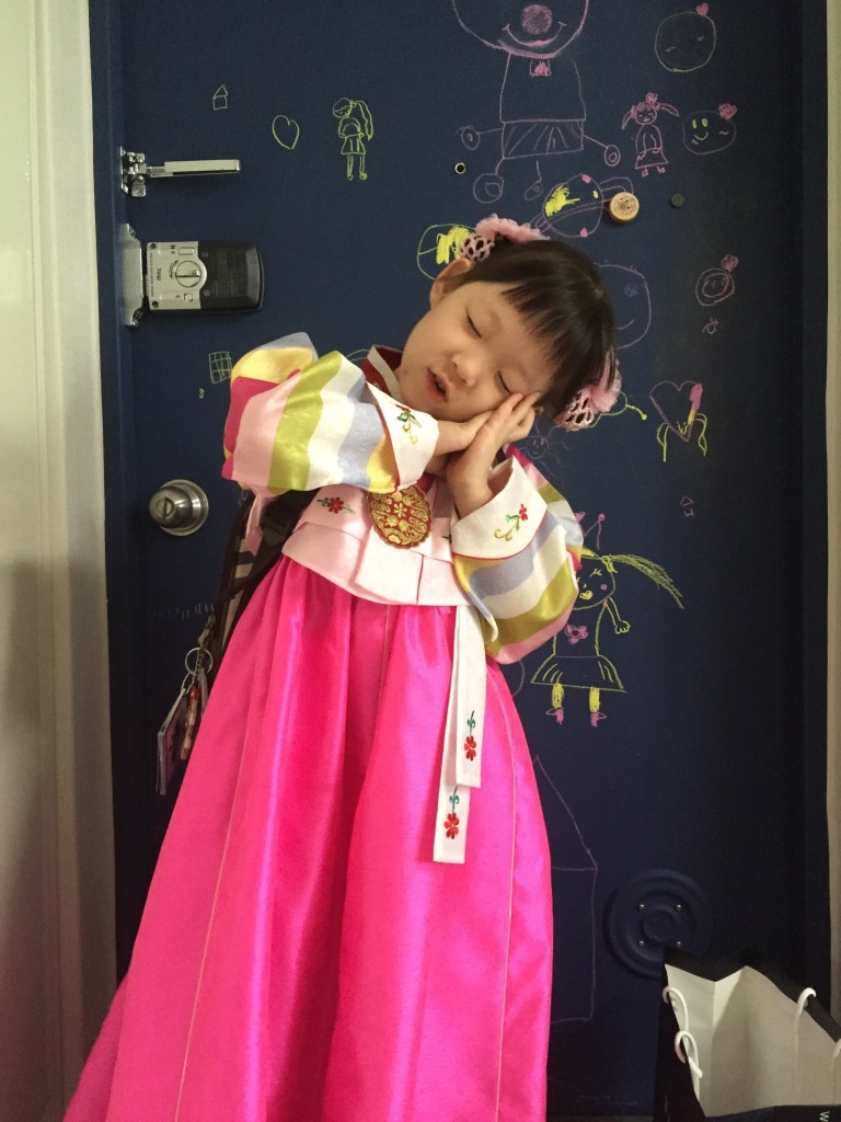 추석 직전 월요일. 오늘은 유치원에서 추석 전통놀이를 한다고.나가기 전 사진 좀 찍자고 했더니 이런다.