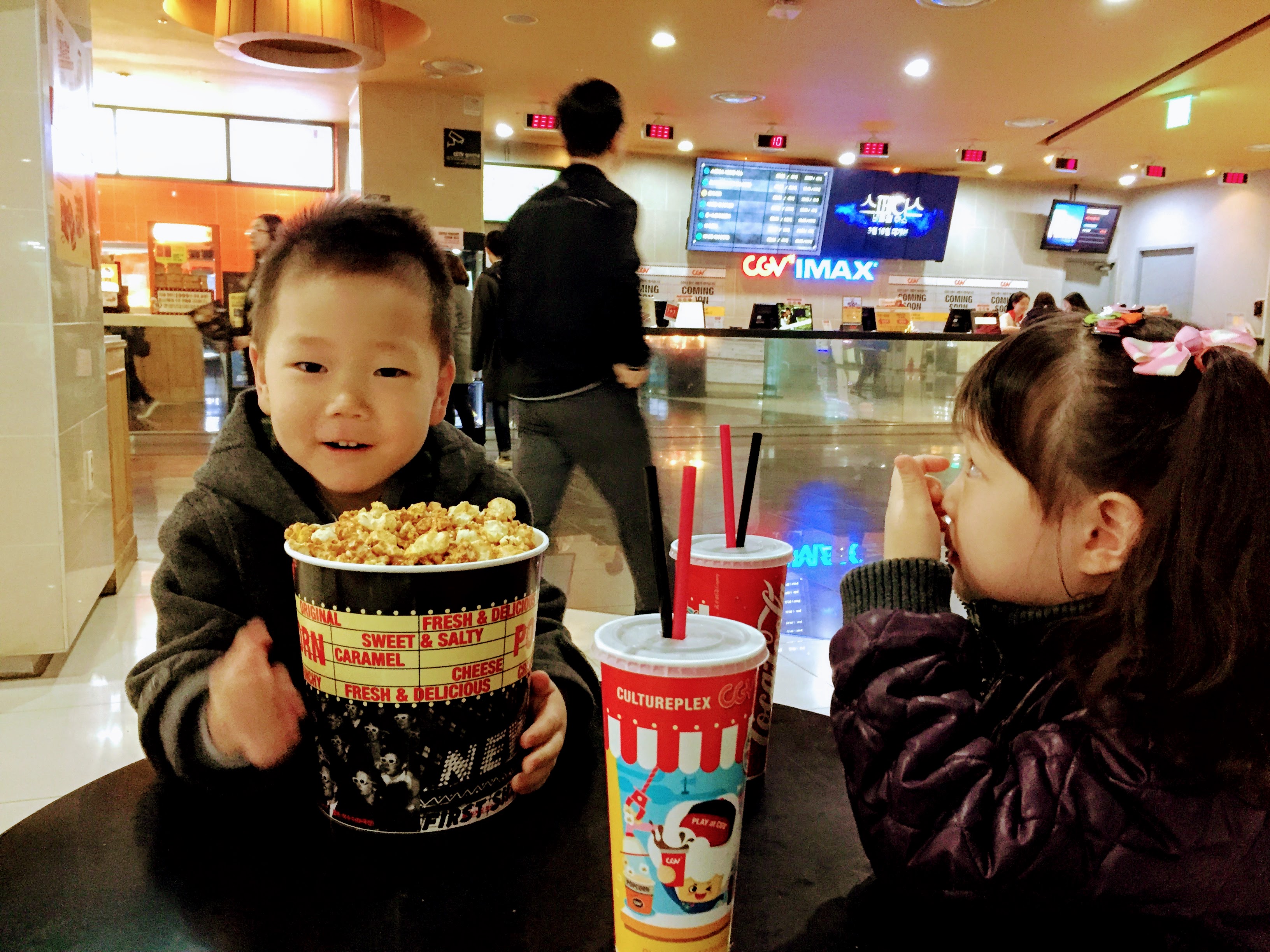 이제 영화를 볼 시간. 다행히도 하임이와 하늘이는 무사히 2시간의 영화 관람을 마치고 나왔다. 하늘이에게 재밌었냐고 물어보니 재미가 없었단다. 재미가 없었다면서 어떻게 2시간을 버텼는지 그게 더 용하다. ㅋㅋ