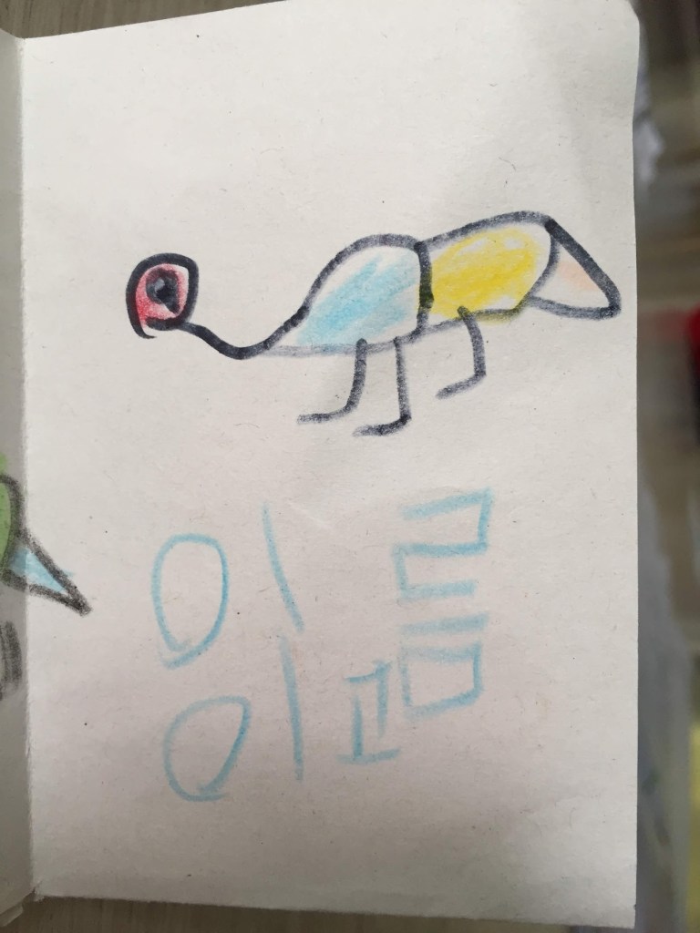 이번에 그린 공룡책의 공룡들에게는 나름의 애칭을 붙여 주었다. 이구아노돈에게는 “이고”라는 이름을, 테리지노사우루스에게는 “태리”라는 귀여운 이름을 붙여 주었다.