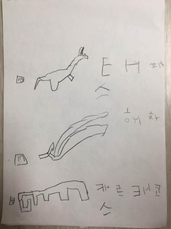 하늘이는 공룡을 너무 사랑한다. 책도 공룡책이나 동물책만 보고, DVD나 VOD도 공룡이나 동물 다큐만 찾아 본다. 작년에는 공룡책 외에 다른 동화도 읽혀보려고 아이와 씨름을 하기도 했으나, 올해 들어서는 그런 일에 힘을 빼지 않기로 했다. 이제는 하늘이의 공룡 사랑을 인정하고, 여러 활동에 공룡을 적극 활용했다. 그래서 하늘이는 한글도 공룡으로 배우고, 그림 그리기도 공룡으로 연습하고 있다.