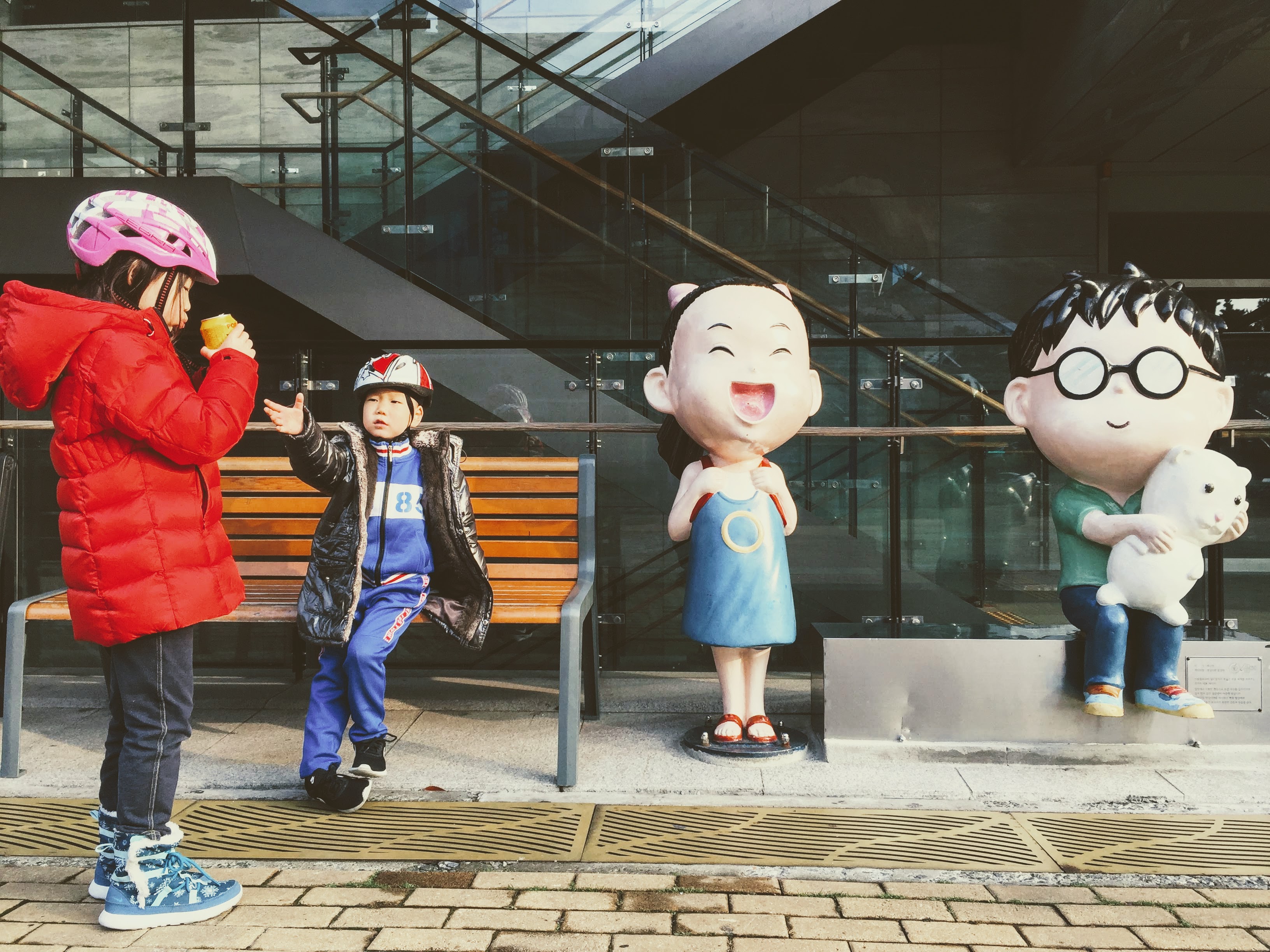 자동으로 만들어져 있던 앨범들을 보다가 작년 11월에 아이들과 자전거를 타고 만화박물관에 갔다가 찍은 사진들을 보며 키득키득 웃음이 났다. 특히 총잡이에게 엎드리는 하늘이를 보며 ^^